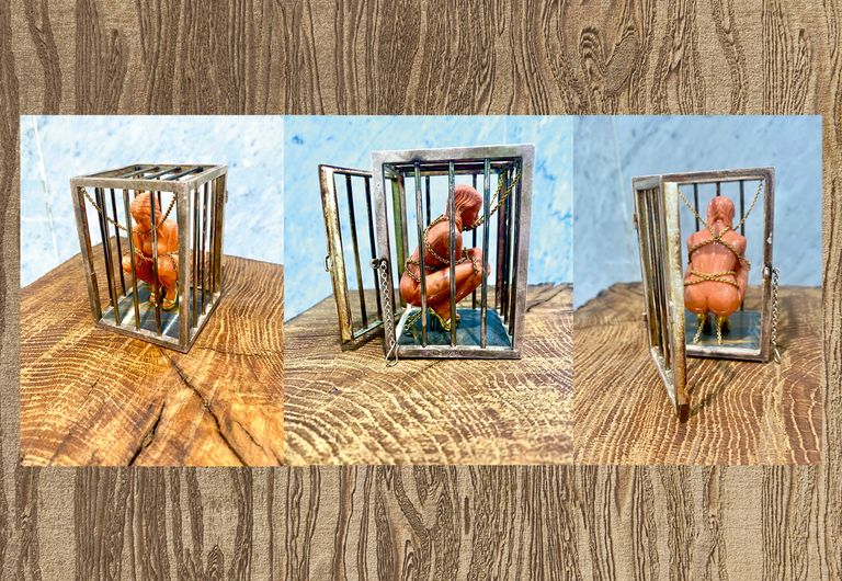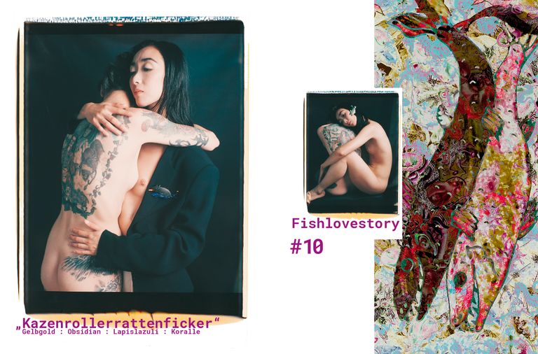 Inspiration und Kollaboration: In Zusammenarbeit mit meinem langjährigen Freund und Künstler aus dem Elsaß Raymond E. Waydelich entstanden viele ausgefallene Schmuckstücke. Diese zwei frühen Stücke aus gemeinsamer Konzeption sind nach einem Besuch auf Kreta entstanden: Eine Amphore mit Flammen und eine Calzedon-Schale mit Fischen als Opfergabe. Schmuckstücke und zugleich Erinnerung an einen besonderen Ort und eine besondere Zeit. Mystische Dokumente.