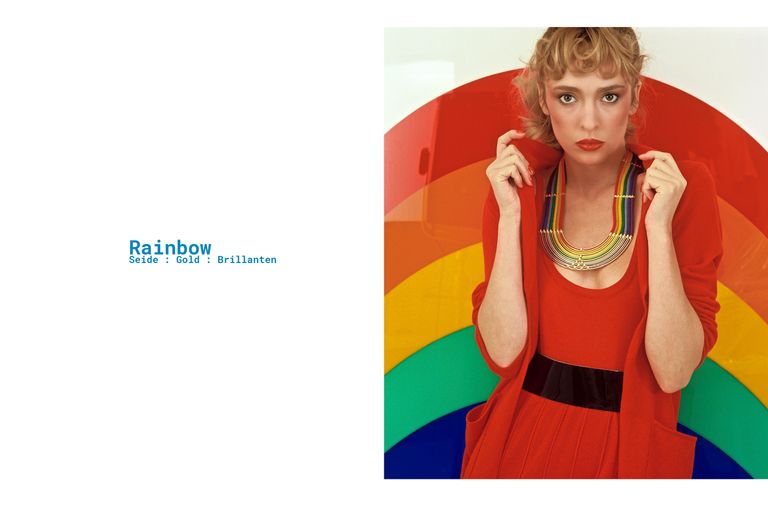 In diesem Stück wollte ich die farbliche Vielfalt der Achate aufzeigen: Aus Mexiko und Brasilien stammen die Edelsteine für diesen Halsschmuck aus halbierten Achatdrusen. Orange und Pink stehen Blau und Grau gegenüber, bilden einen Kontrast und führen über Sepia und Ocker hin zu Bronze und Gold. Farbvariationen der Natur in einem Collier vereint.