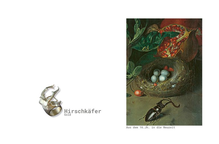 Alle Kunst und ganz besonders Schmuck ist erotischer Natur, mag sich GK denken, wenn er Herzen aus Platin und Gold formt oder die Symbole der Liebe aus Bergkristall schleift und mit Eisen umrahmt, groß wie Lebkuchenherzen auf dem Jahrmarkt. Selbst ohne symbolische Anspielungen atmen seine Stücke, oft allein wegen der Komposition der Materialien, pure Sinnlichkeit. Zum Beispiel wenn GK der kostbarsten Koralle, der seltenen Engelshaut, eine vollkommen neue, goldgefasste Gestalt gibt. Wenn er das archaische Elfenbein des Mammuts so verarbeitet, dass der magische Naturstoff, der Jahrtausende im Eis geschlummert hat, zu neuem Leben erwacht. GK darf es auch wagen, ein Motiv von Lucas Cranach aufzugreifen. Er kann es sich erlauben, das Bild der zartesten Weiblichkeit aus der Reformationszeit in plastischer Form auf einen Armreif zu übertragen. Vielleicht, damit wir die Unschuld, welche die größte Verführung darstellt, neu verstehen können? GK ist auch ermächtigt, pralle Sinnlichkeit im Schmuck zu thematisieren – jenseitsnah, wie ein Künstler des Barock. Er darf sogar seine Kundinnen zum Hexenritt ermutigen. Nicht in der Walpurgisnacht auf dem Blocksberg, sondern mitten in der protestantischen, aufgeklärten Schwabenmetropole, in Stuttgart.