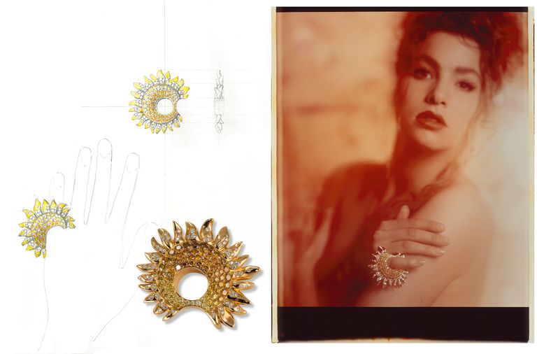 De Beers richtete 1992 einen europaweiten Wettbewerb aus, an dem 17 Gestalter aus 15 Ländern eingeladen wurden, um Schmuckstücke anzufertigen und diese auf eine Ausstellungstournee zu senden. Von mir wurden zwei Stücke ausgewählt. Eines hiervon war der Sonnenring: Die einmalige Zusammenstellung naturfarbiger Diamanten zeigt einen sanften Verlauf von hellem Gelb über kräftiges Orange bis hin zu tiefem Braun. Der Ring kann nur auf dem kleinen Finger getragen werden, sodass die Sonne vollständig sichtbar auf der Hand steht und der Körper der Sonne in die Handfläche übergeht.