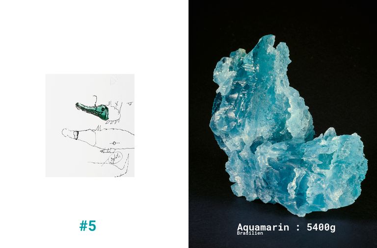 Mystik und Monster. Ein Untier: Minotaurus, der aus einem großen Aquamarin und einer Koralle besteht. Dieser Anhänger ist aus einem über vier Kilogramm schweren Rohstein eines Aquamarins mit stark zerklüfteter Oberfläche entstanden. Die Außenstruktur wurde belassen und in das Schmuckstück integriert: