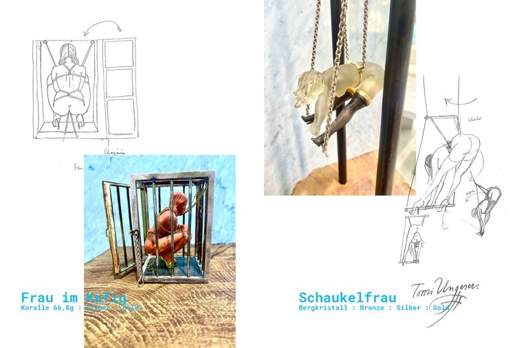 Schöpferische Freundschaften bereichern Leben und Schaffen von Günter Krauss. Da ist Raymond E. Waydelich, der Künstler aus dem Elsass. „Auch ein Mensch von überbordender Phantasie, ein Geschichtenerzähler und Fabulierer.“ Dazu als Dritter im Bunde: Tomi Ungerer aus Straßburg, der große Maler und Zeichner. Kreativität im Überfluss, Sinnenfreude, die sich nicht an die Kette legen lässt und das Talent zum Genießen: „Bei Menschen wie diesen geht mir das Herz auf“, bekennt Krauss. Aus der lustvollen Zusammenarbeit mit Tomi Ungerer entstand eine Kollektion mit erotischem Schmuck. Stilecht nur einem handverlesenen Kreis in der Atmosphäre eines Chambre Séparée der Belle Epoque präsentiert: Bei Kerzenschimmer auf rotem Samt, inmitten roter Rosen. Und bei einem schwelgerischen Diner von Vincent Klink. Verführung, der niemand widerstehen konnte. In welchen Schatullen wohl die preziösen Spielarten der Lust verborgen sein mögen?