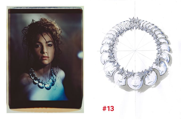 Hier wollte ich die gegenseitige Beeinflussung von Gestaltung und gewachsenen Formen betonen: In diesem Blattcollier sind 9 Aquamarine in grünlich-blauer Farbe und makelloser Reinheit verarbeitet. Die dazwischen liegenden Blattformen in Platin sind von den Steinformen selbst inspiriert, von diesen übernommen und aus diesen umgesetzt. Das Collier ist in sich vollkommen beweglich, sodass es sich an den Hals der Trägerin oder des Trägers sanft anschmiegt.